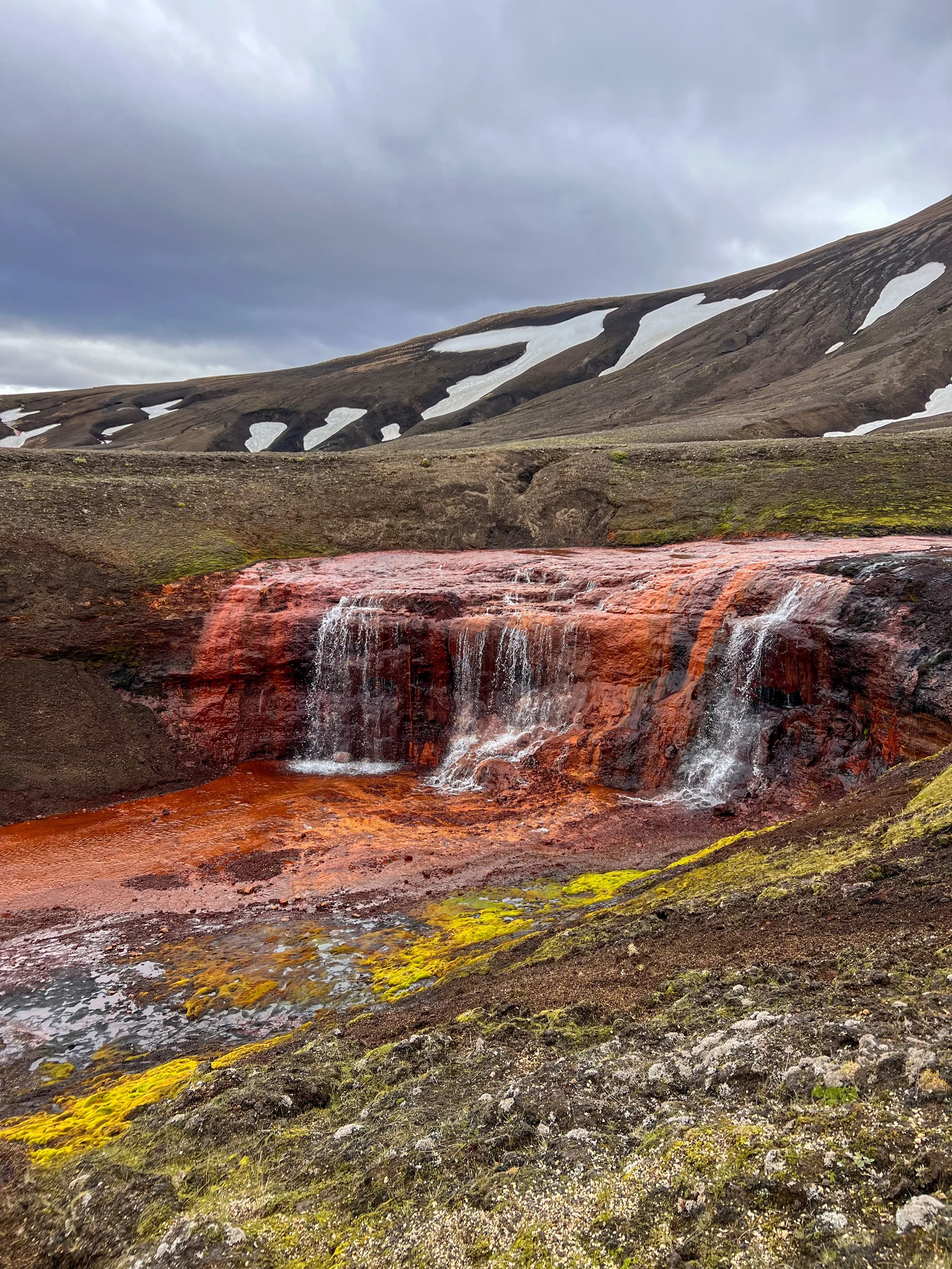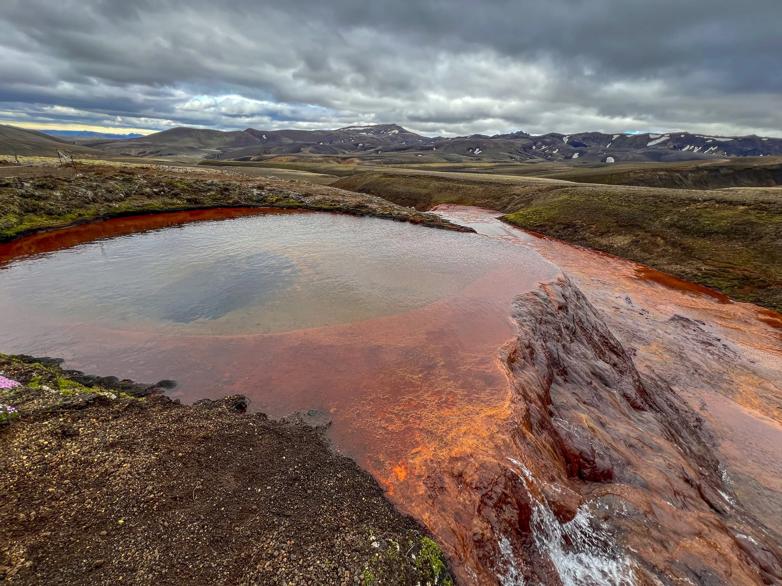 We will make our way into the highlands and hike to Rauðufossar and Rauðauga. We will walk along this beautiful red colored river & waterfalls to find the water source known as the “red eye” on top of the mountain. A spring of red water coming from the underground. After this we will settle into our mountain hut at Landmannahellir and have a good dinner and rest.